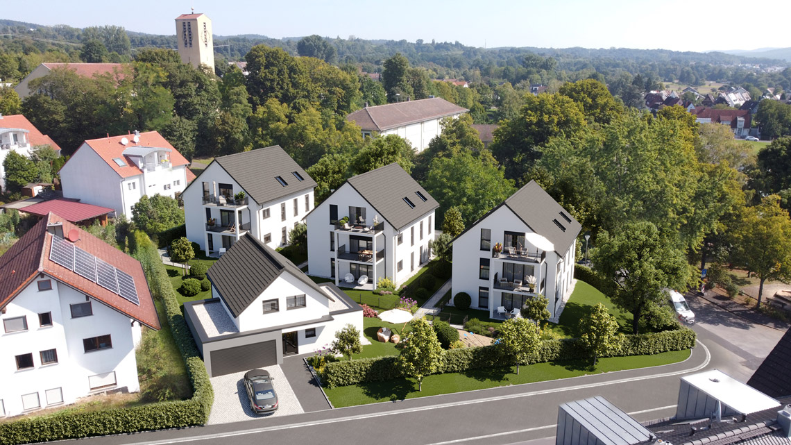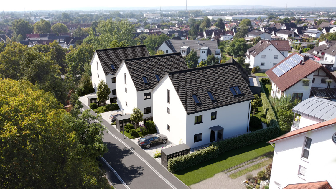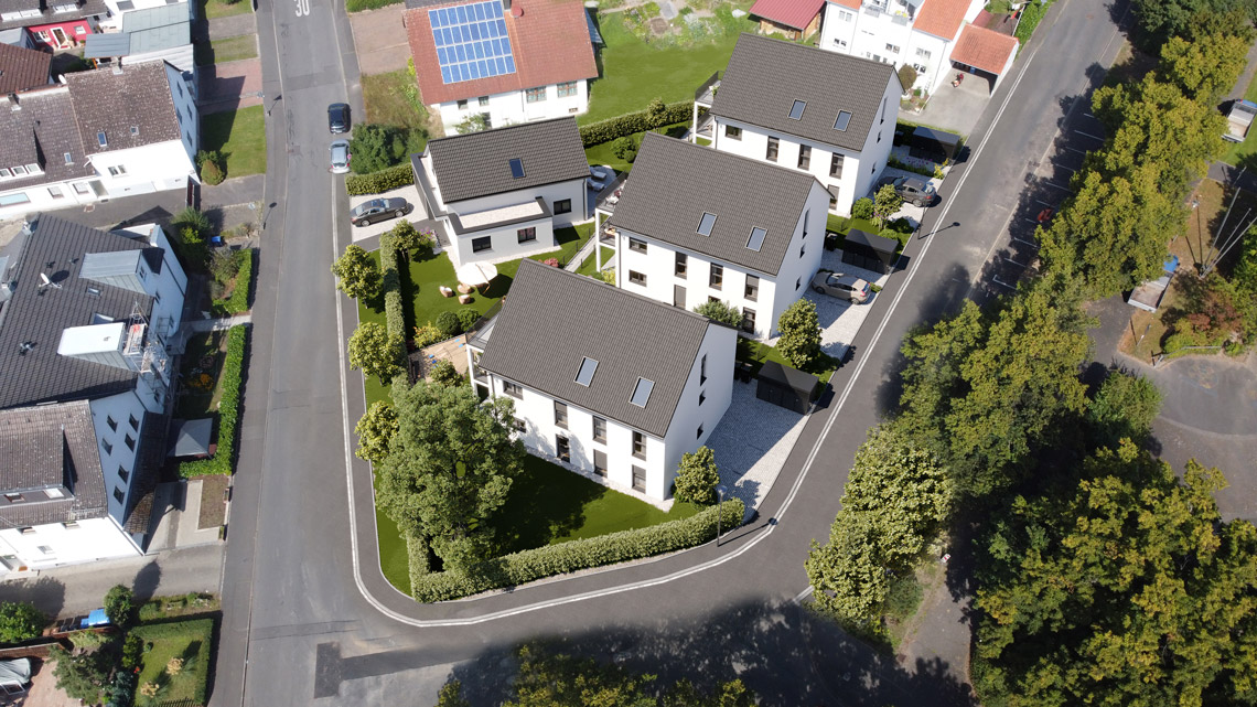 drei Mehrfamilienwohnhäuser, sowie ein Einfamilienhaus errichtet.